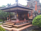 Anjungan Bali di Taman Mini Indonesia Indah (TMII) tampil dalam bentuk lingkungan perumahan tradisional Bali di atas tanah seluas 8.000 m2. Tatanannya mengikuti pola arsitektur tradisional, seperti yang terdapat pada Lontar Astha Kosala-Kosali. Aneka bangunan model putri dibatasi tembok keliling (penyengker). Pintu gerbang berupa candi bentar diapit patung Hanoman dan Hanggada, sebagai simbol tolak bala. Pintu gerbang ini berada di utara, yang bisa didatangi lewat jalan di sebelah selatan danau miniatur kepulauan Indonesia.