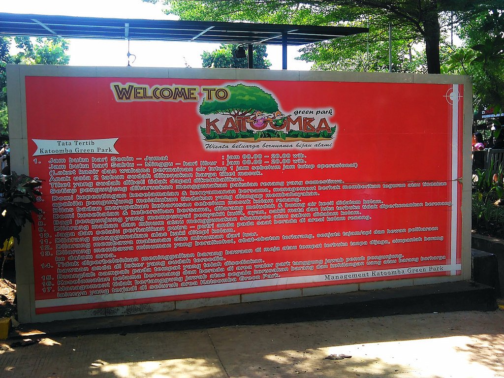 Tak diketahui dari mana nama 'Katoomba' dipetik. Mungkin dari nama kampung suku Aborigin di New South Wales, Australia. Tapi apapun asal-usulnya, yang jelas nama Katoomba memang nyaman di telinga. Dan kalau kemudian dilengkapi menjadi 'Katoomba Green Park', juga tidak ada salahnya. Soalnya, kawasan hiburan di ruang terbuka seluas 3 hektar ini memang terkesan hijau. Areanya padat pepohonan, walau dia berada di lingkungan yang ramai penduduk. Katoomba Green Park ini juga tidak seberapa jauh dari perumahan Griya Bukit Jaya.